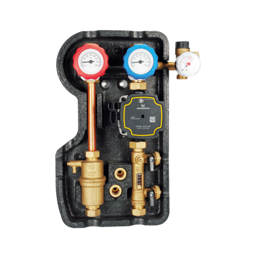Zweidirektionale Solarzirkulationsgruppe – Vorlauf- und Rücklaufzweige