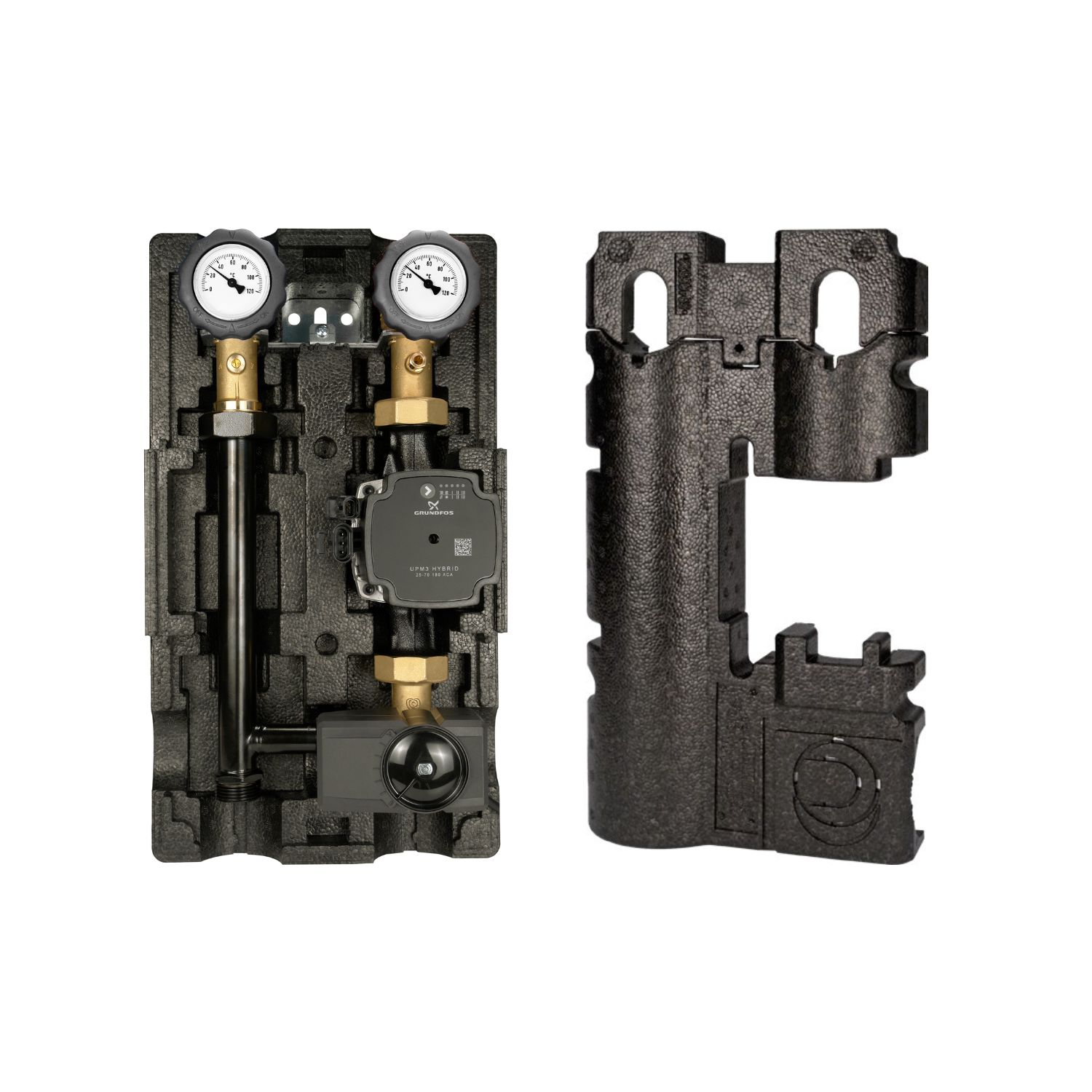 Das Modul wird serienmäßig mit einer Grundfos UPM3-K Hybrid Pumpe, ErP-Ready geliefert.