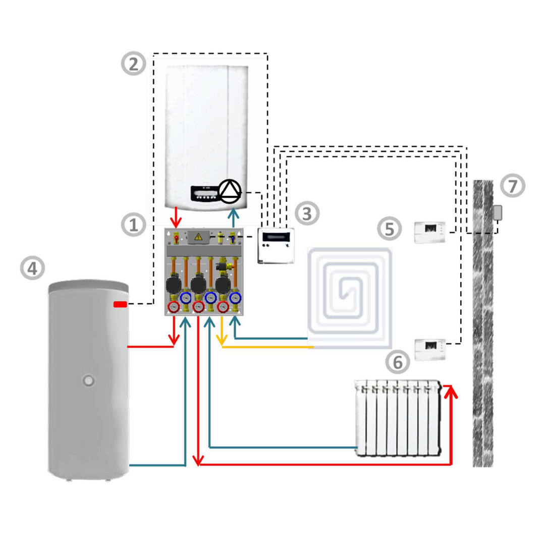 Das NOVAZONE Multizonen-Modul ist in der Lage, den richtigen Volumenstrom des Wärmeträgers sowie einen geeigneten Förderdruck in allen Heizungsanlagen sicherzustellen, die eine zusätzliche Leistung im Vergleich zur Kesselpumpe benötigen.
