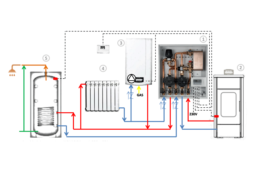 • Austausch der Energie zwischen Erzeuger und Heizkreis;