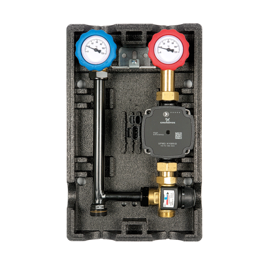 Il gruppo è fornito di serie con circolatore Grundfos UPM3 Hybrid, ErP-Ready.