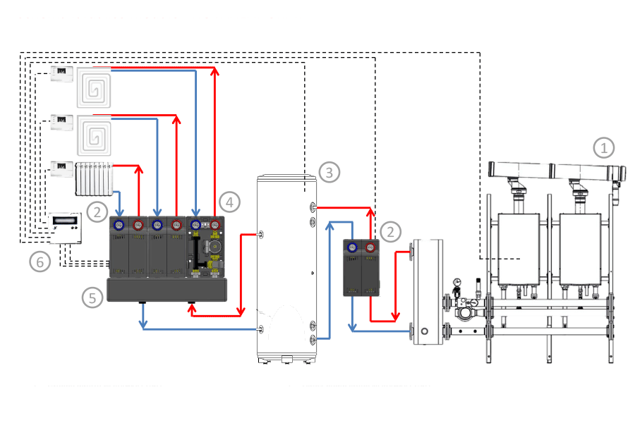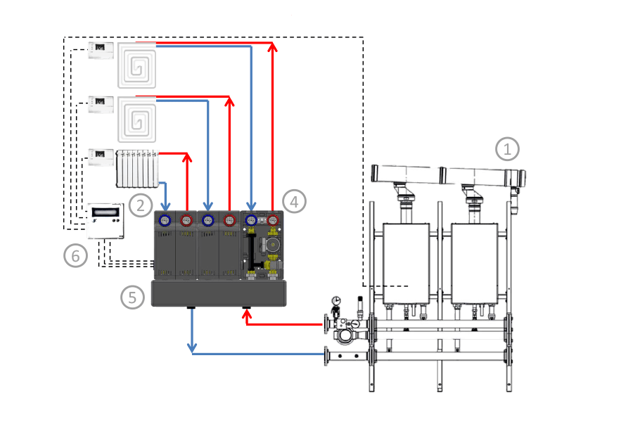• 1 - Caldaia a gas in cascata.