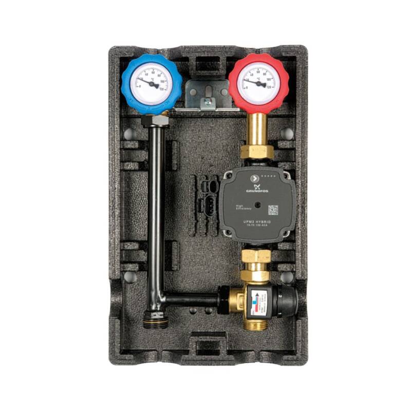 Il gruppo è fornito di serie con circolatore Grundfos UPM3 Hybrid, ErP-Ready.