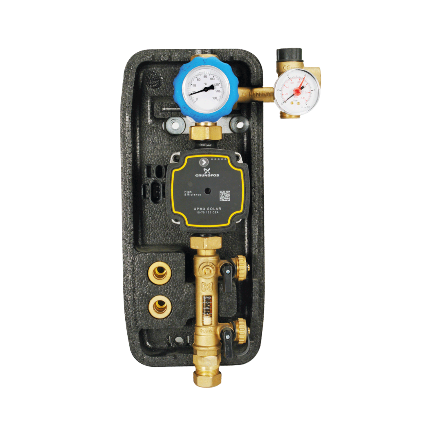 Il gruppo è fornito di serie con circolatore Grundfos UPM3 Solar ErP-Ready, settabile a curva costante o PWM.