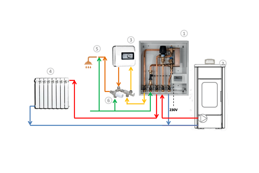 Le soluzioni idrauliche sono fornite complete di cassetta metallica, da appendere al muro o da incasso, verniciata a polveri. Lo scambiatore sanitario SWEP da la possibilità di produrre in istantaneo fino a 20 lt/min di acqua calda sanitaria.